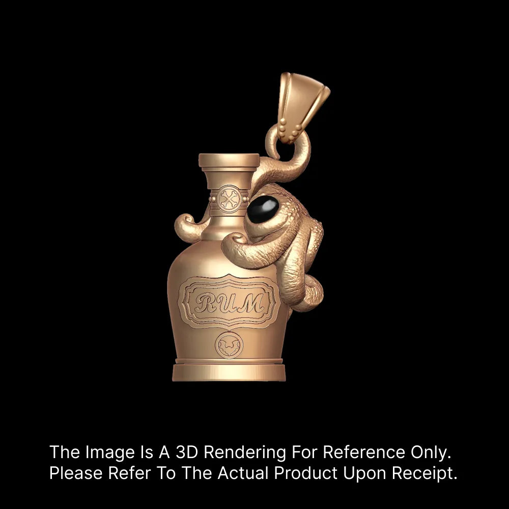 The Octopus Capsule Pendant draws inspiration from the playful, curious nature of the octopus, a symbol of intelligence and adaptability. Its quirky design, featuring an octopus tightly embracing a bottle of rum.