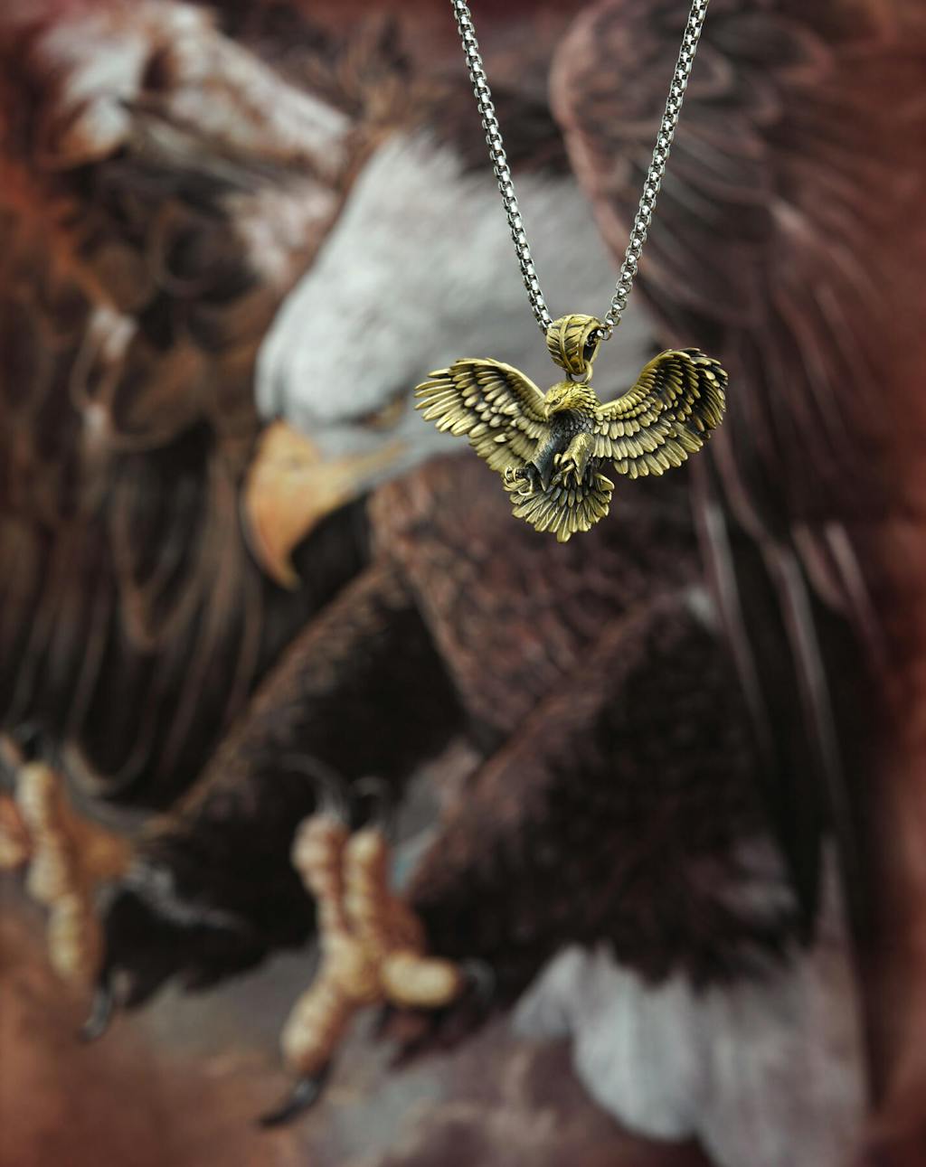 Inspired by the majestic diving posture of the bald eagle, this pendant embodies the essence of power and elegance. The bald eagle, a symbol of freedom and resilience, represents the pursuit of one's true self with unwavering courage. Wearing this pendant is like carrying a piece of nature's strength and inner fortitude.