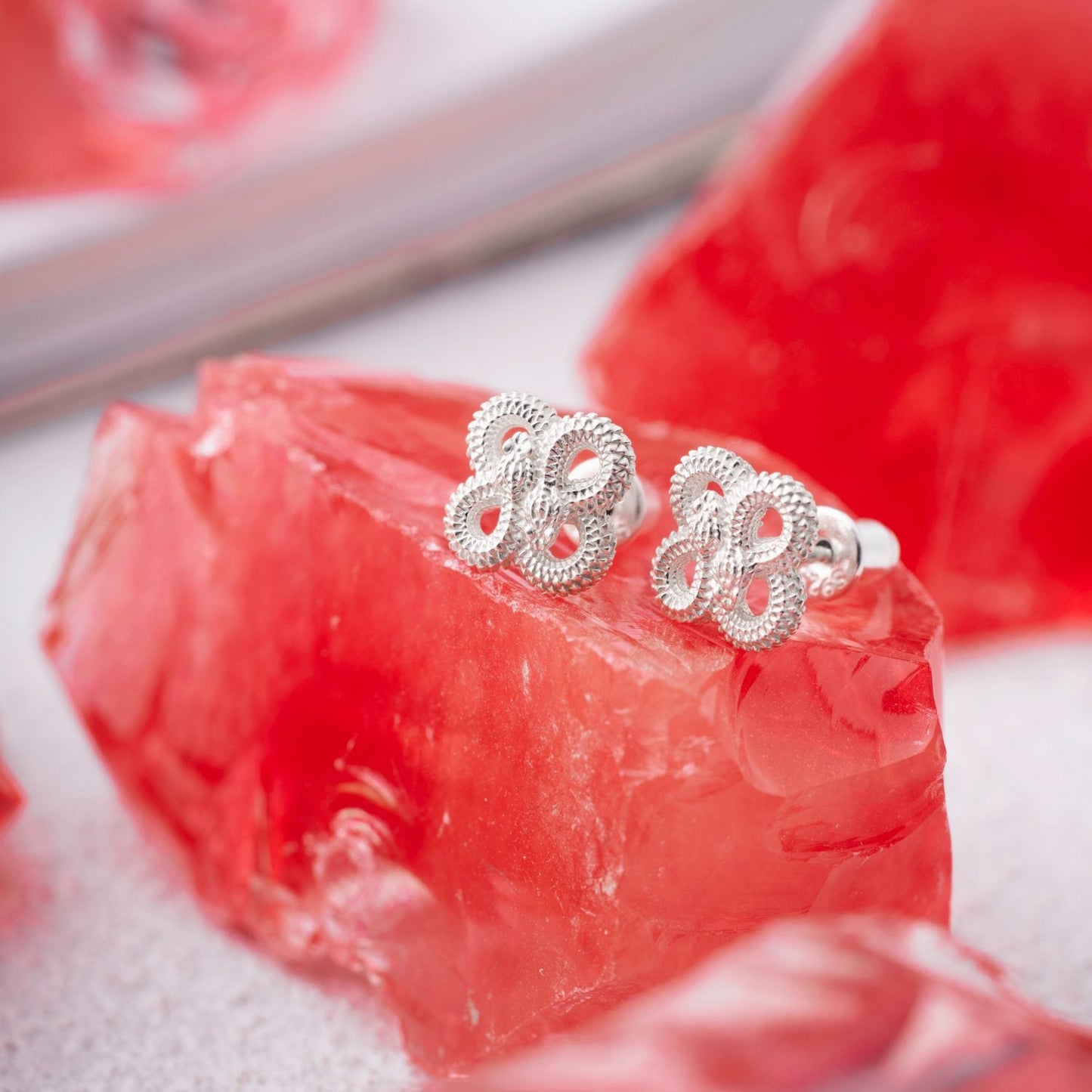 Crafted with ingenuity, the earrings feature two snakes gracefully entwined, evoking the imagery of a lucky four-leaf clover, symbolizing good fortune. Each meticulously visible snake scale harmonizes seamlessly with the hoop's design elements, creating a cohesive and visually captivating aesthetic.