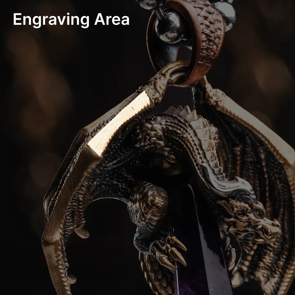 The dragon's posture wraps around a crystal column, brimming with visual tension and lifelike movement. From the blade-like wings with wind-creased membranes, to the fierce, angular head with exposed fangs, every inch speaks of poise and power. The claws clutch the crystal, the tail spirals, the wings stretch mid-flight — the body frozen in a low-altitude hunt. Each scale breathes with rhythm, each claw strikes with dimension, and the throat captures a coiled energy, all sculpted through high-precision, miniature epic-level craftsmanship. Available in two material themes — a fiery brass version with purple copper accents for a classic warrior feel, or a cooler tone in alternate finishes — it doesn't just catch eyes, it grips them.