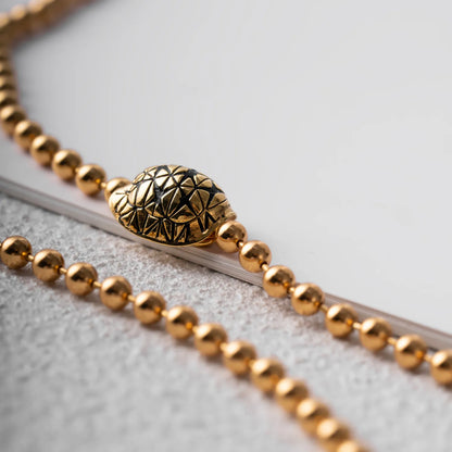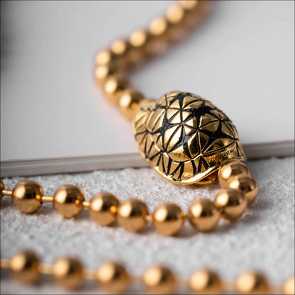 The Star Tortoise Clasp Necklace draws inspiration from the revered Indian Star Tortoise, embodying auspiciousness, good fortune, and symbols of luck, happiness, and prosperity in Indian culture.