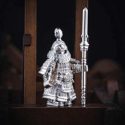 The Jin Iron Soldier Figurine draws inspiration from the formidable Iron Pagoda of the ancient Jin Dynasty cavalry. With a detachable magnetic design and an exclusive heavy cavalry spear, it embodies the strength and grandeur of ancient warriors, evoking a sense of historical majesty and power.