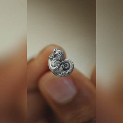 Crafted with meticulous attention to detail, these earrings measure less than 12mm and vividly reproduce the chameleon's skin textures and other intricate details. Handmade from 925 silver, they are designed to prevent allergies, ensuring comfort for sensitive ears. The flat design on the back ensures a snug and comfortable fit against the ear, making them a practical yet stylish accessory. Additionally, customizable metal materials are available, allowing for a personalized touch.