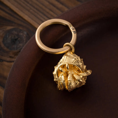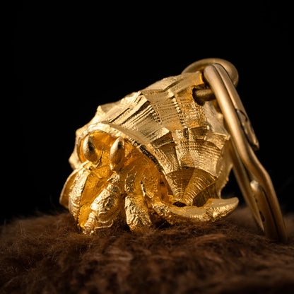 Inspired by hermit crab, we designed this keychain. Hermit crab is strange and beautiful creature lives in muddy seabeds, on land in tree caves, and under rocky ledges. They have hard pincers but soft middles with no outward protection. Because of this, they use their hooked tails to hold and wear shells they find that are of an appropriate size. They live for up to 70 years and can get up to over 12 inches in length.