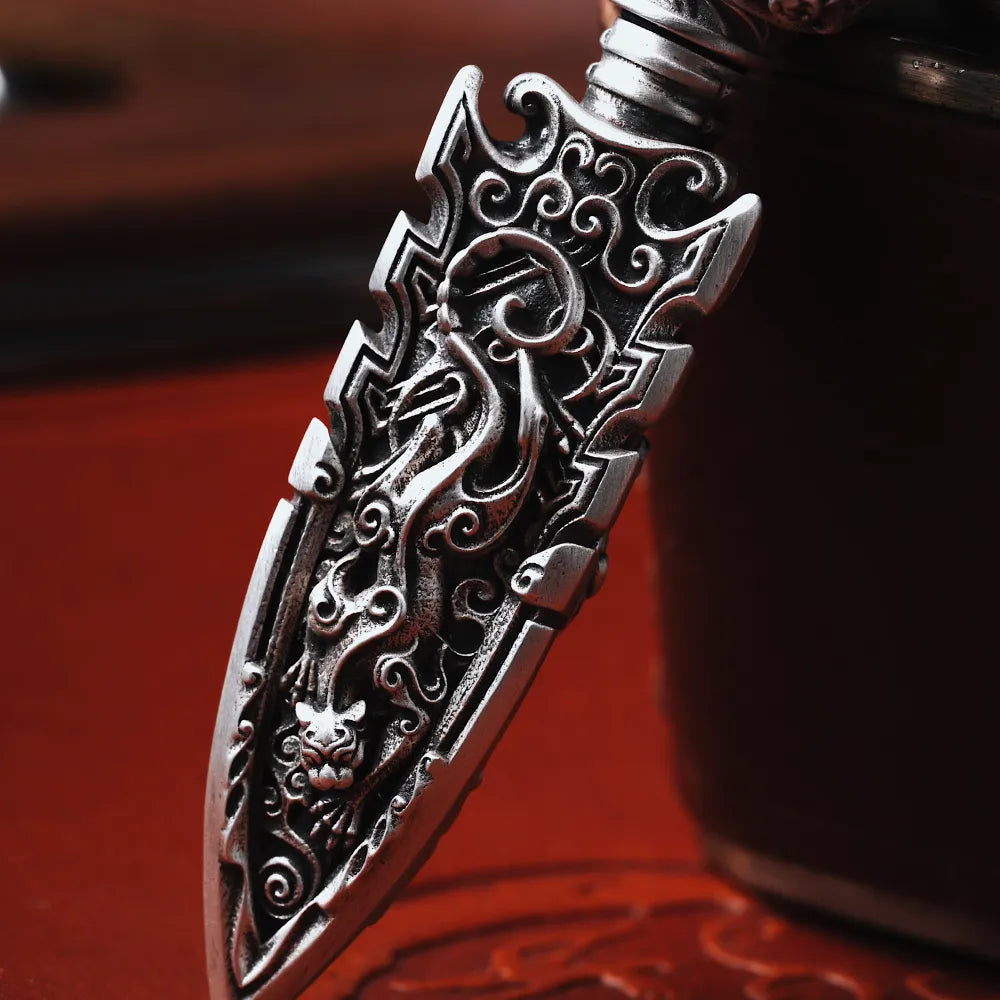 Crafted with meticulous attention to detail, the pendant boasts a fusion of metals that showcases unparalleled craftsmanship. The intricate motifs of the tiger, dragon, and crane are meticulously etched onto each side, creating a mesmerizing display of cultural significance. Its multi-metal construction not only adds depth but also elevates its aesthetic appeal, making it a true masterpiece of artistry.