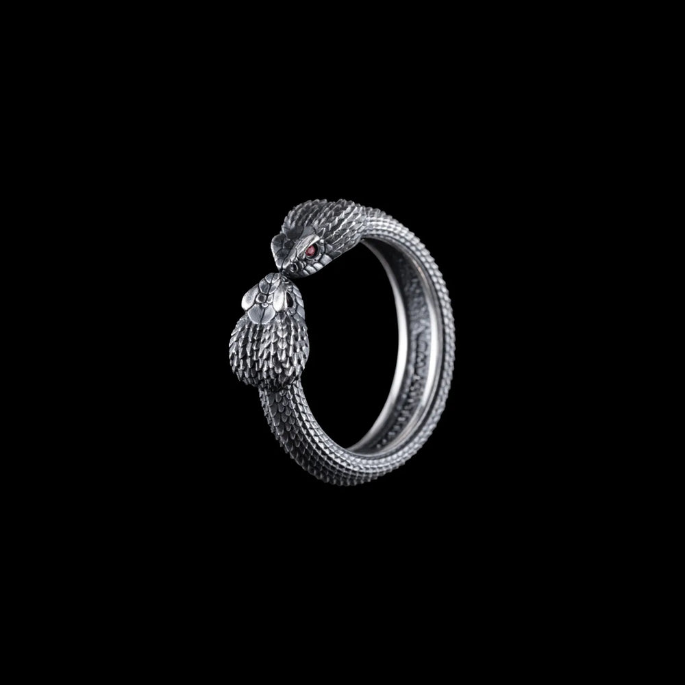 Inspired by the enigmatic Amphisbaena, a two-headed serpent, this ring delves into the profound theme of duality and binary opposition. The double-headed snake embodies contradictions and conflicts that are an inherent part of life's intricate tapestry. It mirrors the moral choices we face, the eternal struggle between good and evil within human nature, and the ceaseless interplay of light and darkness.