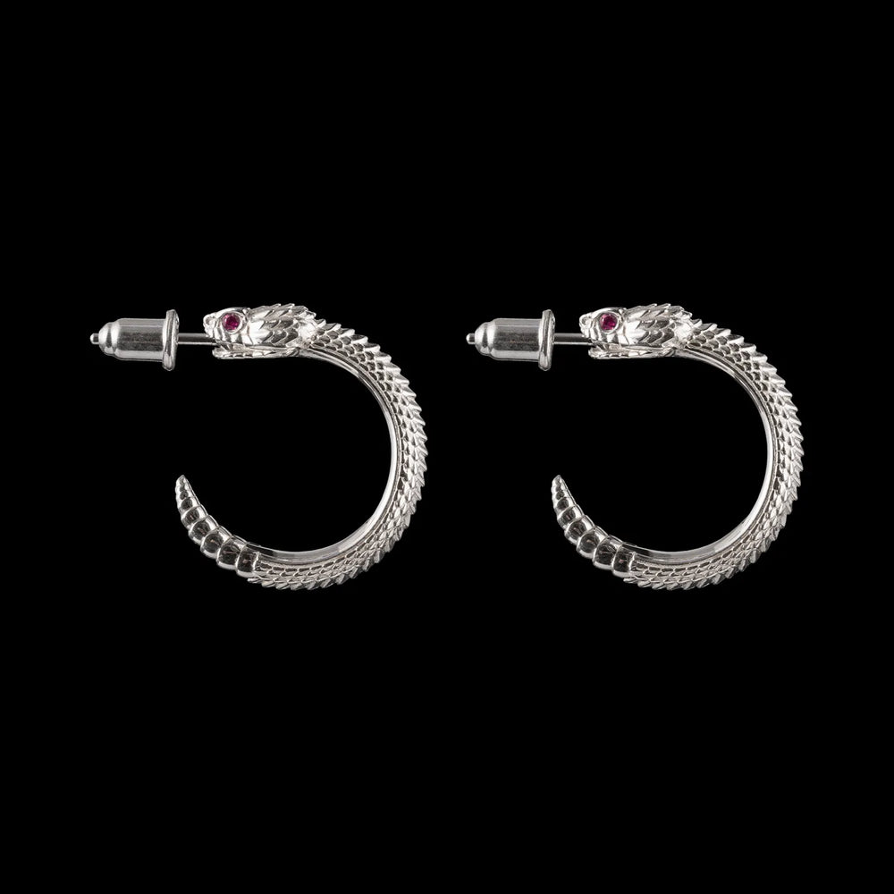 The Rattlesnake Earrings come together in a harmonious blend of ingenious design and unique structure. The handcrafted inlaid zircon stones for the snake eyes create a lifelike and captivating effect. The expert craftsmanship shines through in every aspect, every intricately designed snake scale is clearly visible, adding a touch of authenticity to the piece. The polished snake tail and belly provide a textured and refined appearance that elevates the overall aesthetic.