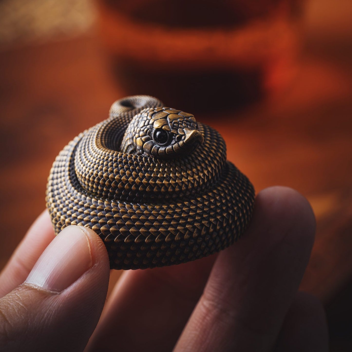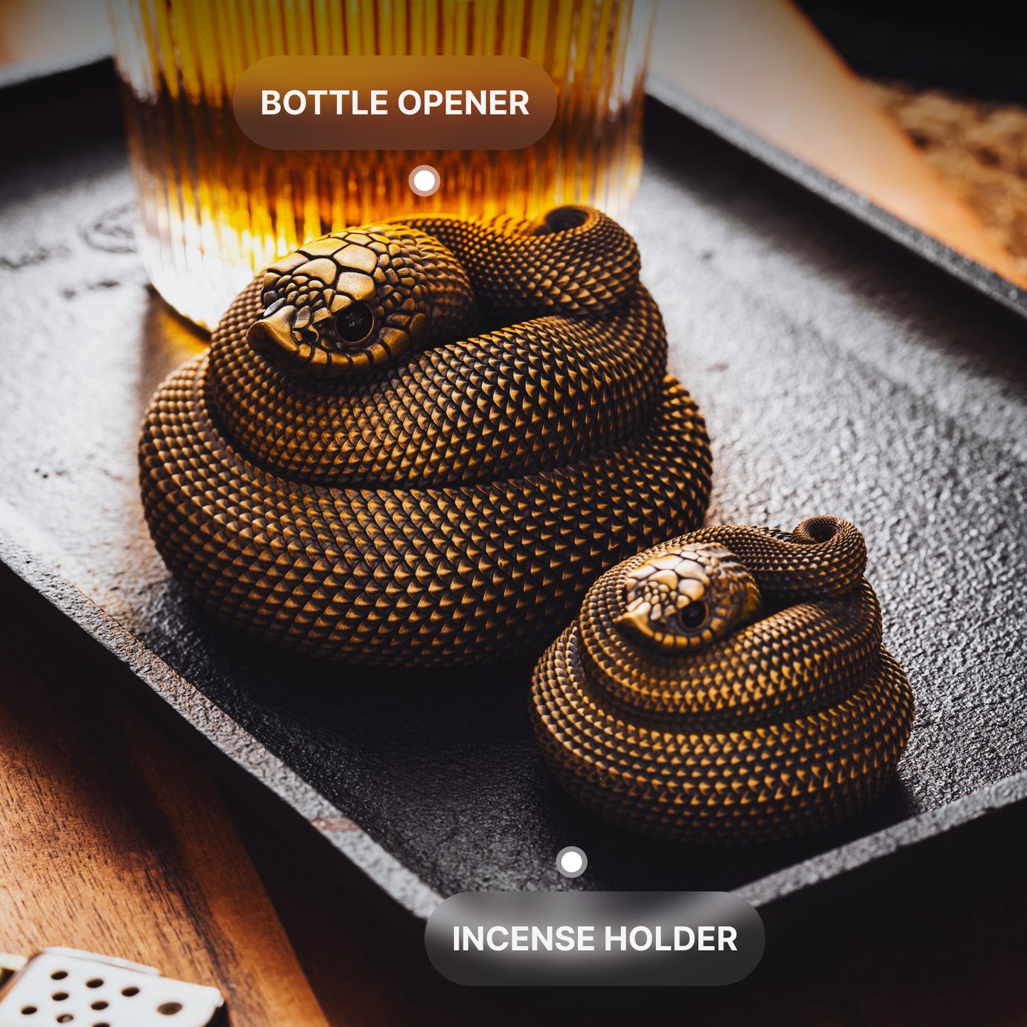 The Hognose Snake Incense Holder draws inspiration from the delightful image of a coiled hognose snake, a captivating sight that has previously inspired our acclaimed hognose snake collection. Leveraging the positive response to our earlier designs, we've expanded our repertoire to include two functional products based on the snake's coiled posture - an incense holder and a bottle opener. This incense holder, smaller in size than its counterpart, ingeniously utilizes the snake's coiled tail. Beyond its functional prowess as an incense holder, it serves as an enchanting decorative piece, showcasing the charm of the hognose snake.