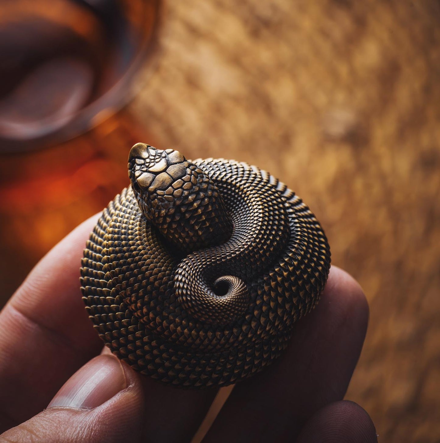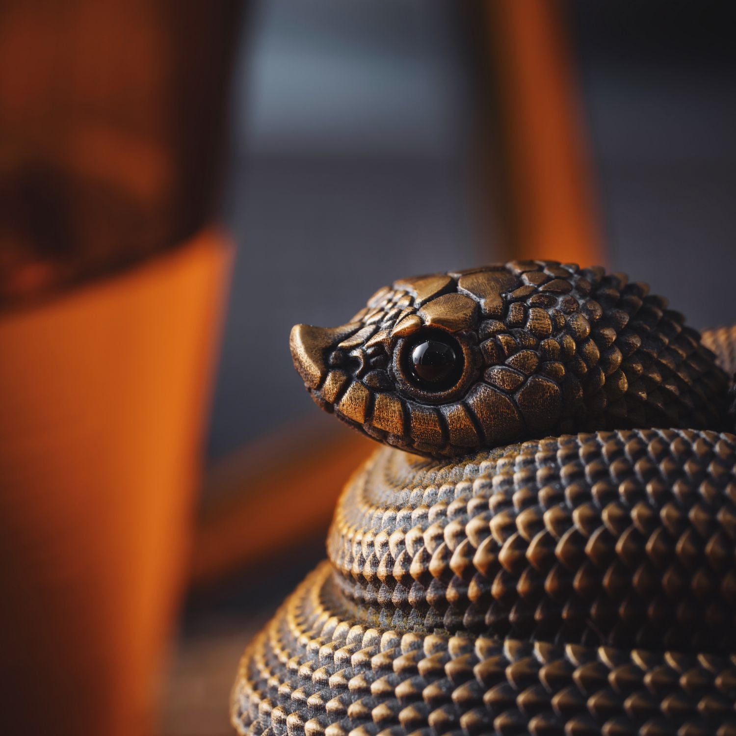 Crafting this incense holder posed challenges integral to its three-dimensional portrayal of the snake's coiled position. Extensive adjustments were made to capture the essence of the coiled hognose snake, ensuring a lifelike appearance that meets our exacting standards. Additionally, achieving a smooth transition from the intricately scaled head to the rest of the body required dedicated effort and precision.