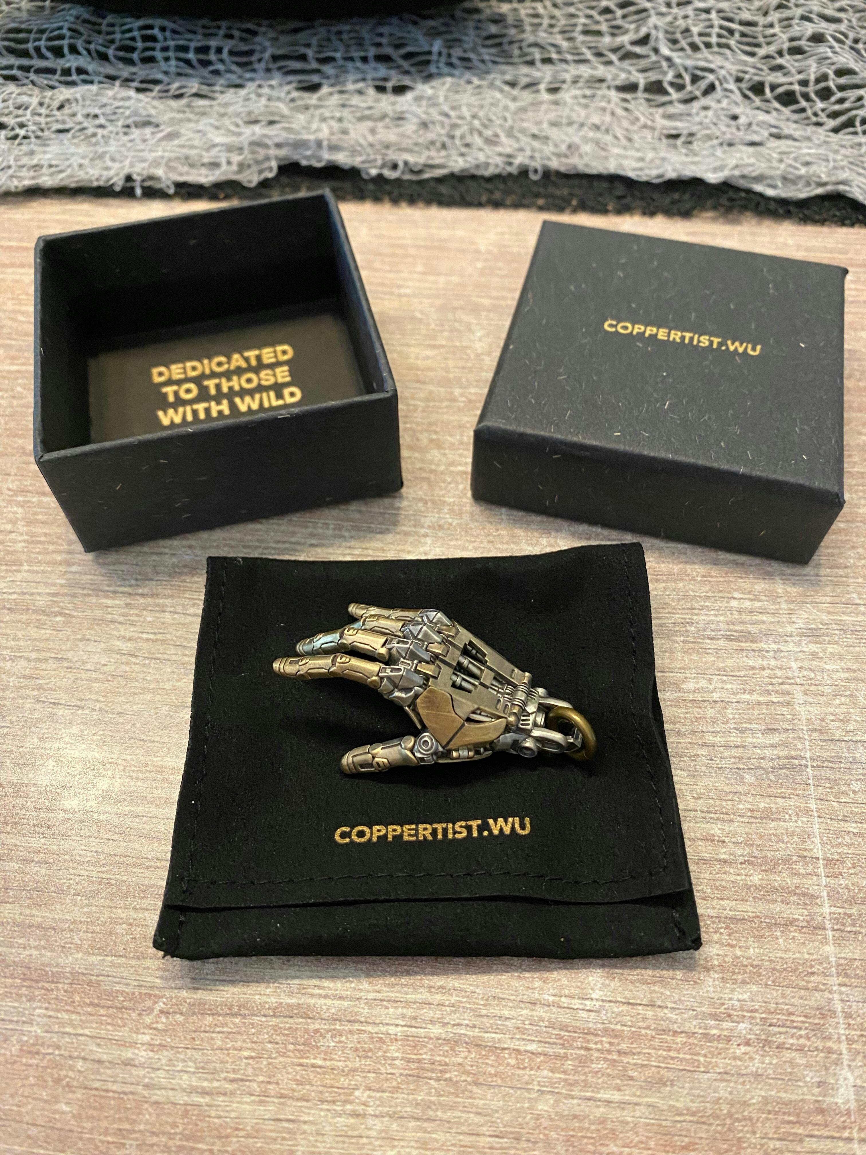 Each piece is built from 18 precision metal parts and fully hand-assembled with an engineer's precision and an artist's soul. The movable joints allow it to mimic human gestures like “OK” or “peace,” while the openable back exposes the skeletal structure beneath—a visual thrill for those who worship form and function. Every joint, curve, and click has been tested to deliver a mini-mech marvel that blends techy charm with intricate handcraft.