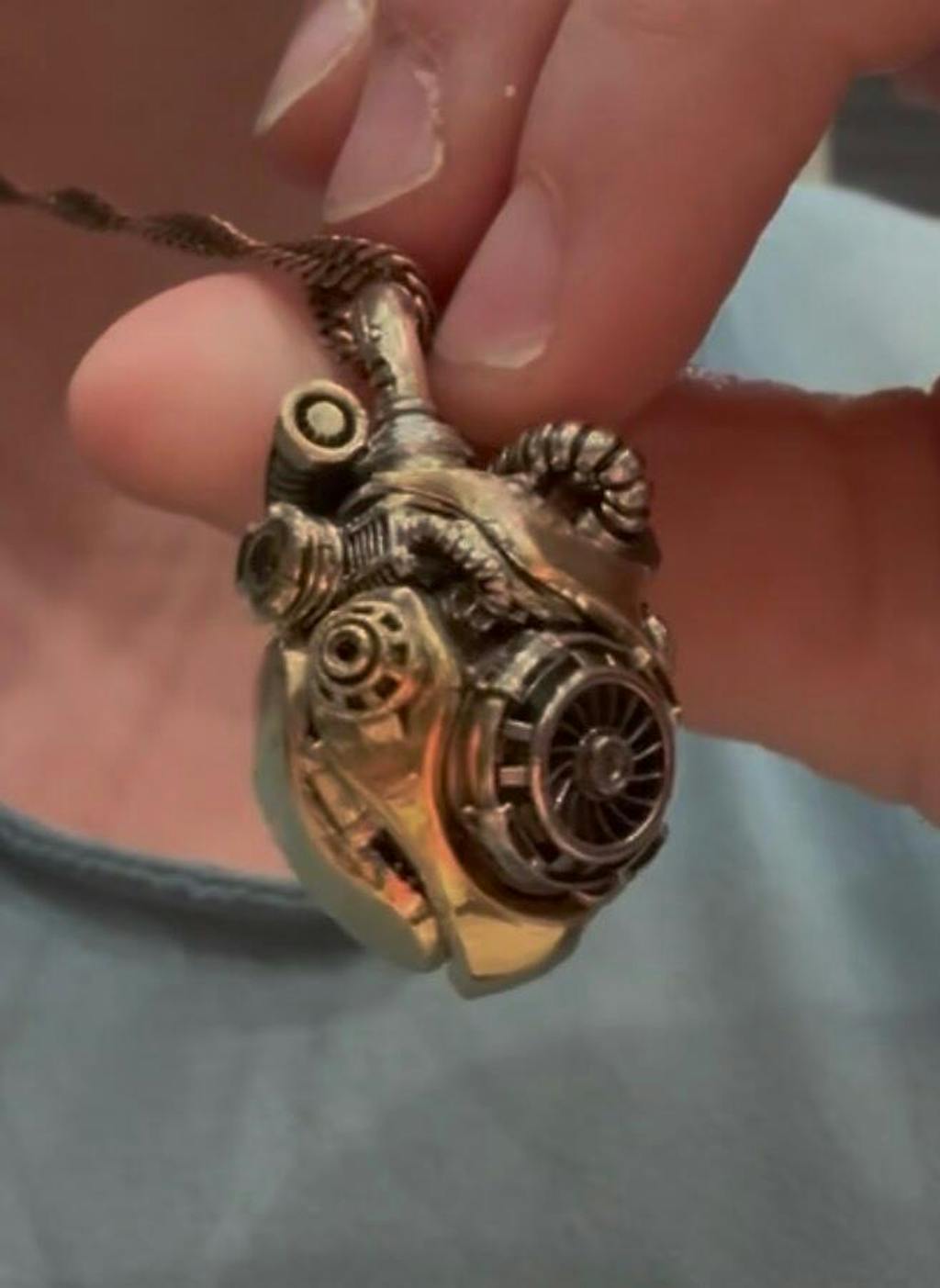 A pendant that beats with both art and engineering, the Mechanical Heart reimagines the human heart through gears, valves, and brass rivets. Every vessel and contour has been transformed into mechanical detailing, with a clever push-trigger system hidden in the aorta that animates the heart in lifelike motion. It's a fusion of anatomy and steampunk innovation, symbolizing unbreakable love, resilience, and the eternal spark of passion.
