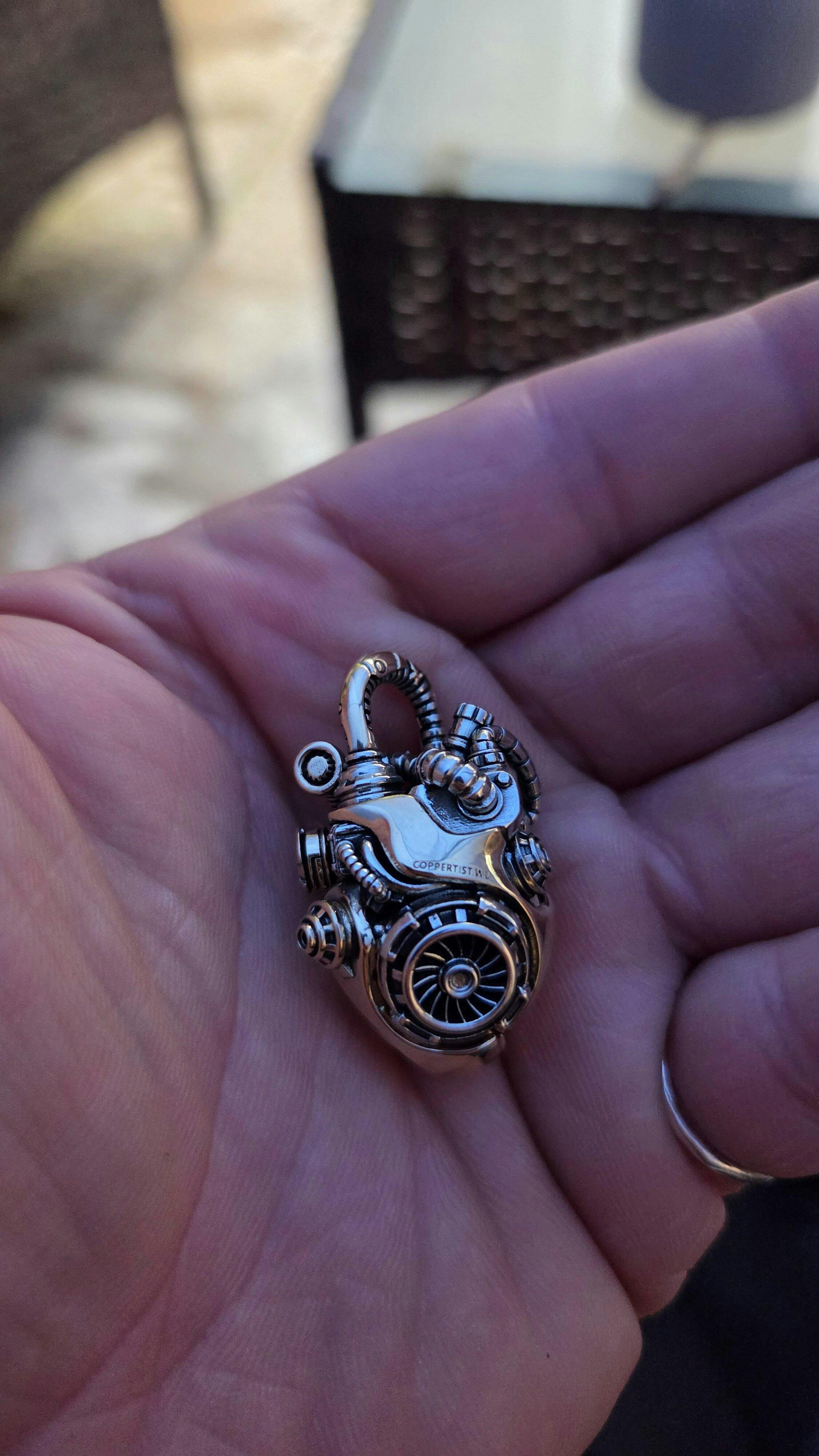 A pendant that beats with both art and engineering, the Mechanical Heart reimagines the human heart through gears, valves, and brass rivets. Every vessel and contour has been transformed into mechanical detailing, with a clever push-trigger system hidden in the aorta that animates the heart in lifelike motion. It's a fusion of anatomy and steampunk innovation, symbolizing unbreakable love, resilience, and the eternal spark of passion.