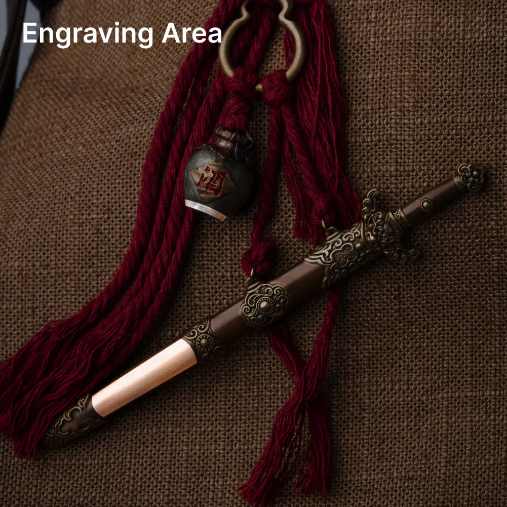 This Mini Wine Jar Charm blends classic wuxia aesthetics with refined metal craftsmanship. Inspired by the imagery of travelers “wandering the world with a sword,” it features a vintage-style flask paired with a miniature blade charm. The flask can be opened and used as a small container pendant for items such as cinnabar powder, incense pellets, tiny keepsakes, or memorial ashes—making it both symbolic and functional.