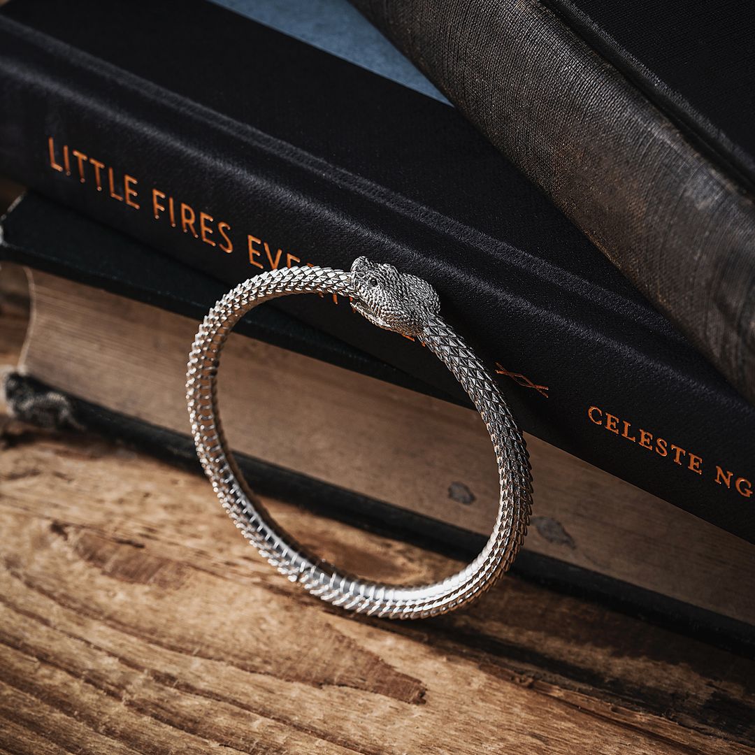 The Ouroboros Bracelet takes its inspiration from the ancient symbol of a serpent eating its own tail. The Ouroboros symbolizes new beginnings and rebirth, representing the cyclical nature of life. This unique and powerful symbol has been incorporated into the design of this bracelet, creating a stunning piece of jewelry that is both meaningful and visually striking.