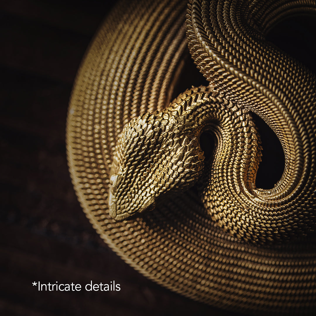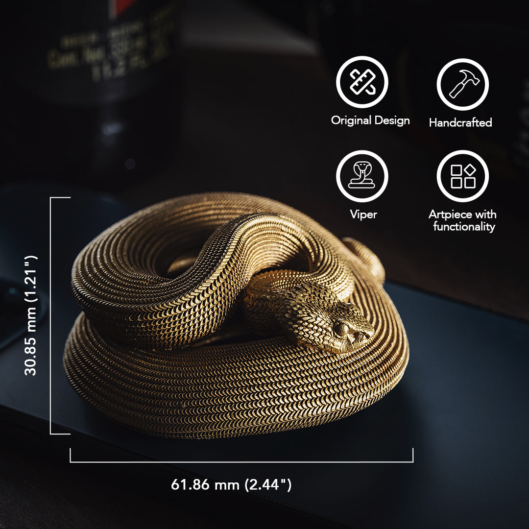 Crafted with over 10,000 scales, the Viper Bottle Opener breaks the limits of craftsmanship. The snake's body has some folds, restoring the appearance of a real coiled viper. From the front, it is an artwork, but when picked up, it reveals its practical side as a bottle opener, making it the perfect combination of art and functionality.