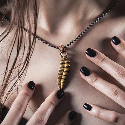 Crafted from the highest quality materials, the Brass Rattlesnake Tail Pendant showcases intricate details of the snake scales on the hanging buckle and upper part of the pendant, inspired by the bones of the snake. This stunning piece highlights the artisanal skill that went into its creation, making it an exceptional addition to any jewelry collection.
