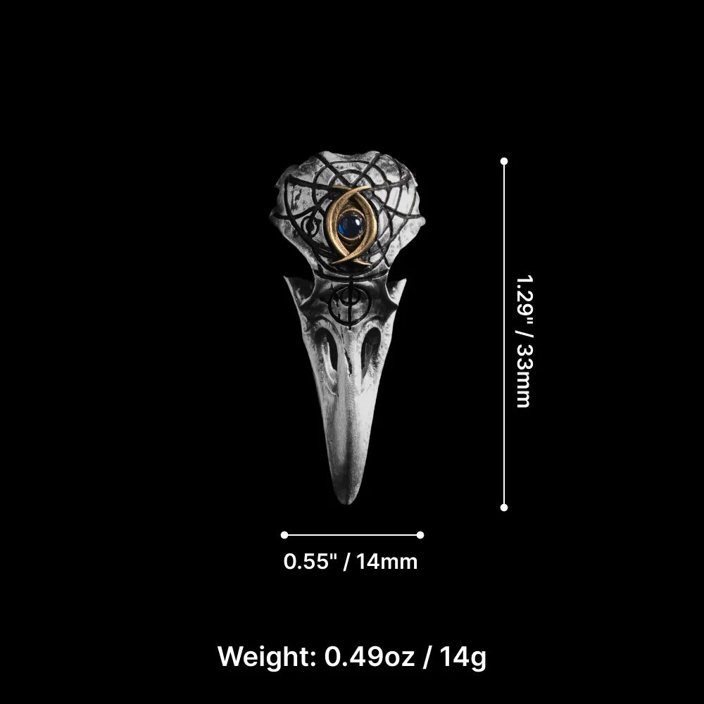 This isn't just an accessory—it's a miniature sculpture you can wear. The raven skull is etched with cosmic galaxy motifs, a reminder of the infinite connection between life and the stars. Each engraving is hand-filled by skilled artisans in two distinct finishes: a black-fill version for a cold, rational edge, and a vermilion-fill version that brings an Eastern mystique and protective energy. At the brow sits a 2 mm round zircon stone (default in blue, but fully customizable), representing the third eye's clarity and spiritual awakening. The beak holds a 4 mm natural agate for inner strength and insight. A feather-shaped clasp ties the theme together, crafted from four brass and cupronickel components hand-assembled for dimension. Choose between a Milan rope or braided cord—20 colors in two styles—for a truly one-of-a-kind fit.