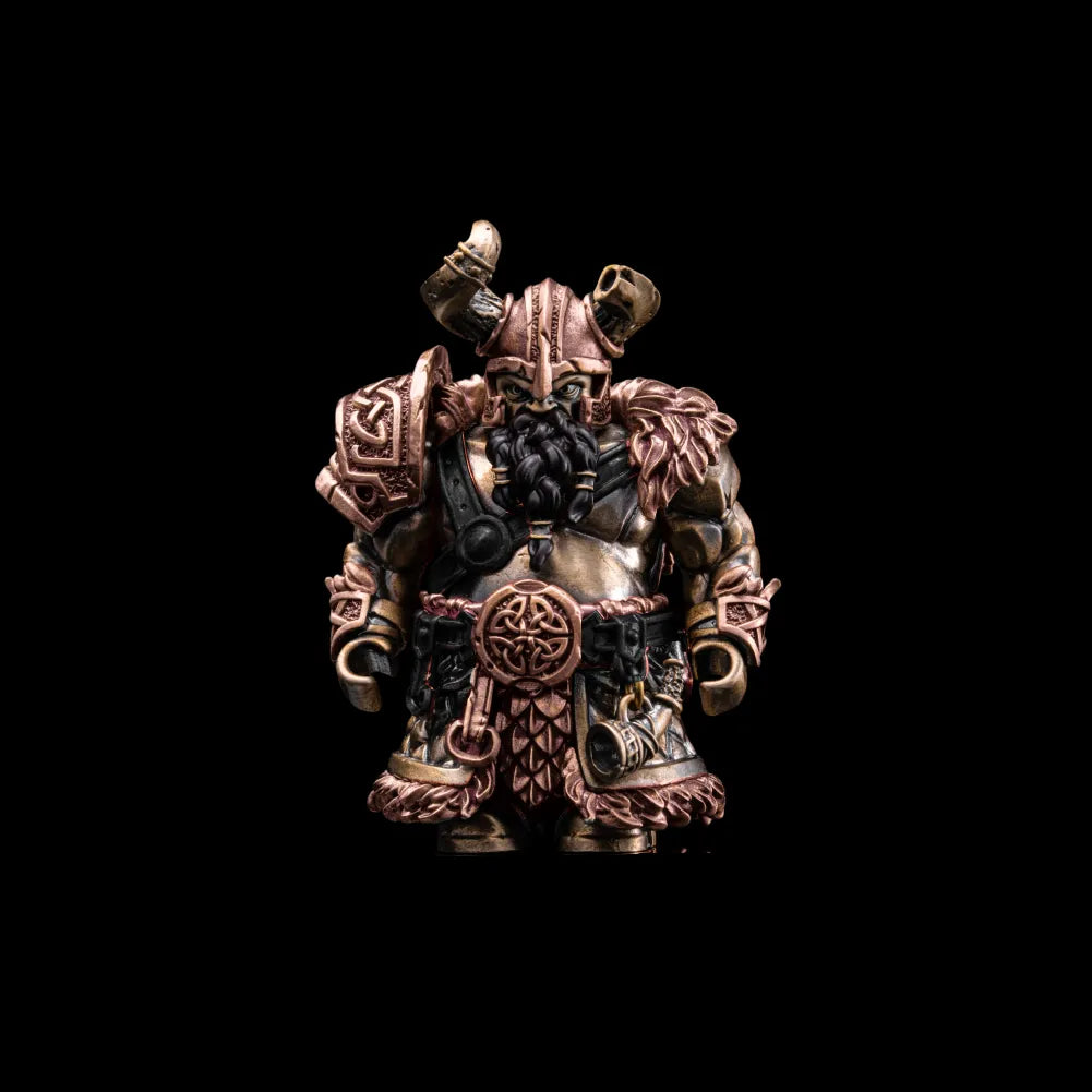 This piece feels closer to a historical artifact than a decorative figure. The weight, proportions, and worn details give it presence without dramatization. Every element, from the broken horned helmet to the scarred shield, communicates survival and authority earned over time. It’s a figure that invites inspection, reinterpretation, and interaction rather than a single fixed pose.